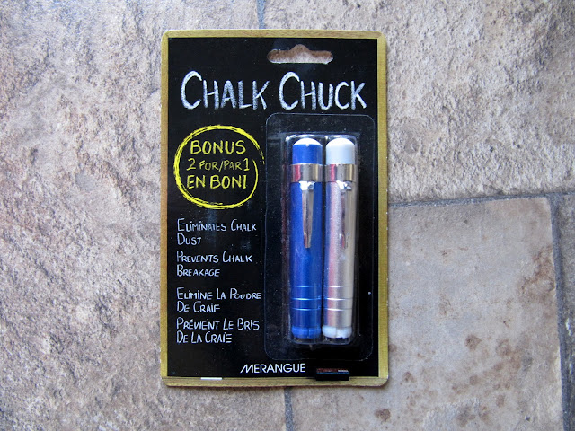 I plan to use a chalk chuck to hold the chalk to make the chalk less messier to hold and to cut down on the dust. Plus, I remember these things from school and how fun it was when your turn came to use the teacher's chalk chuck! And it's also just fun to say - Chalk Chuck!