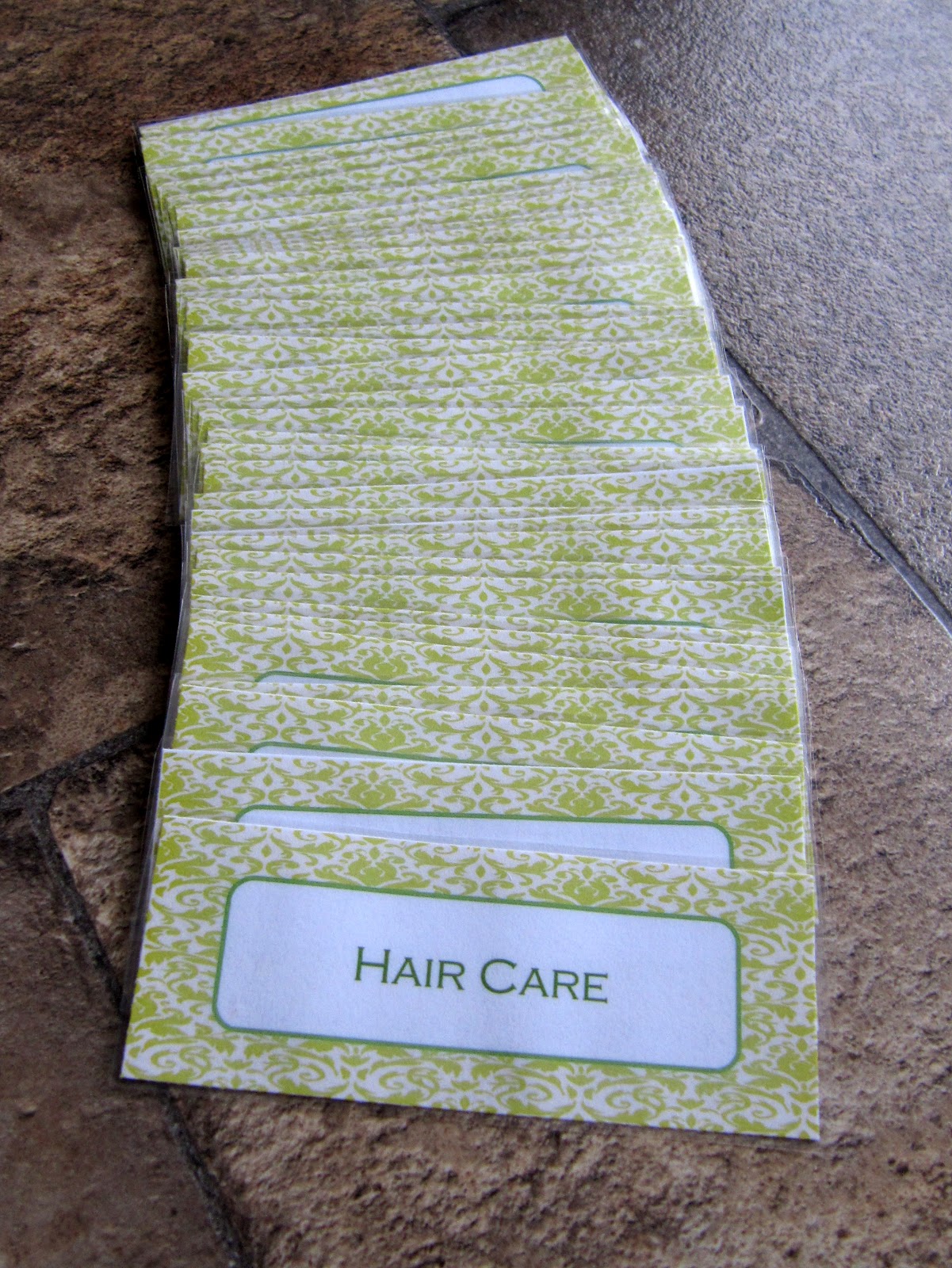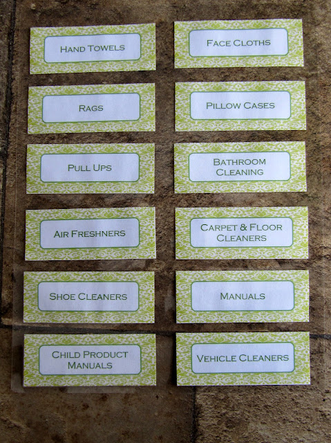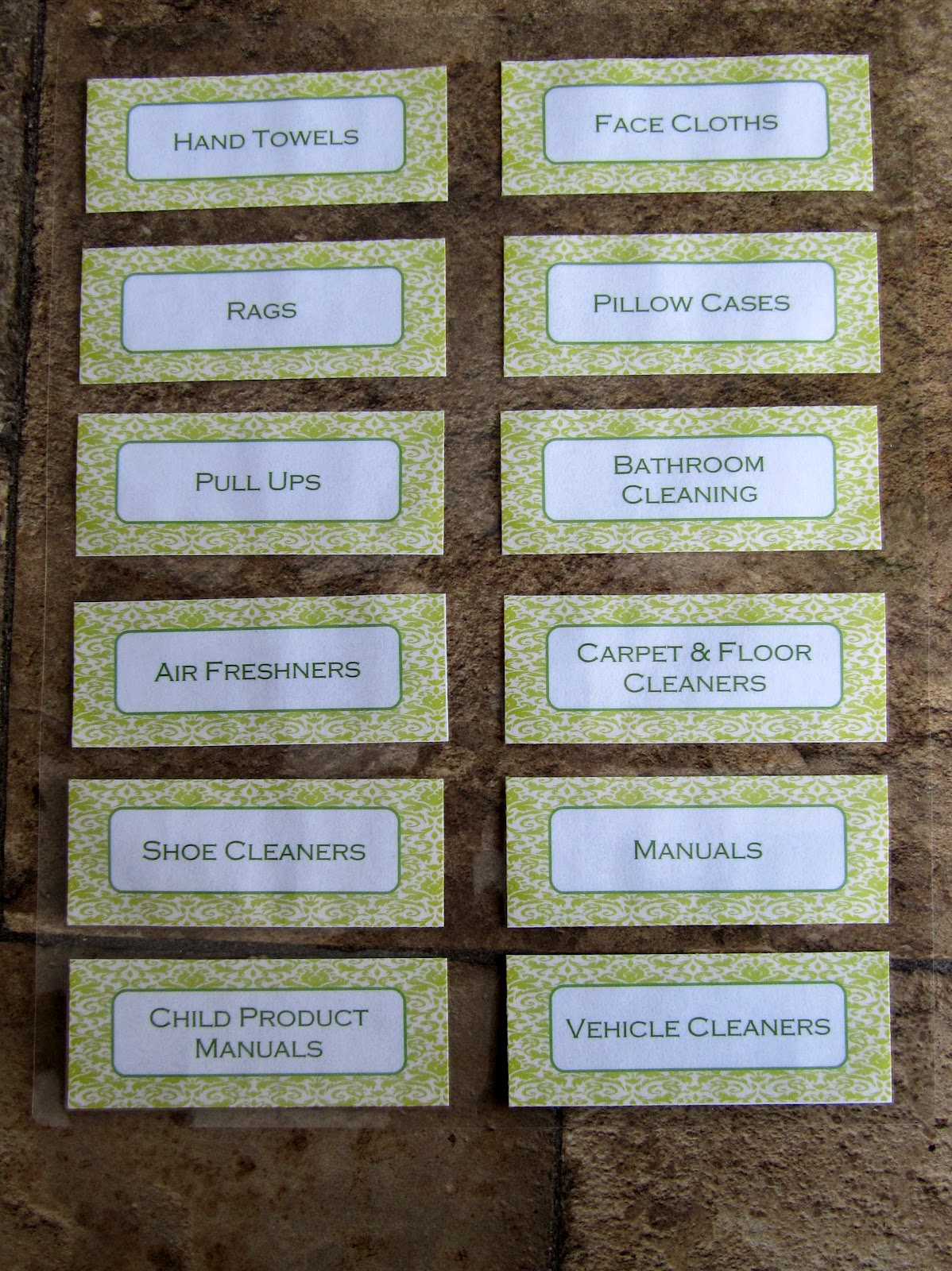 I made labels for all the containers I wanted to use on excel and printed them out on white letter paper. Then I cut out each label and laminated them.
